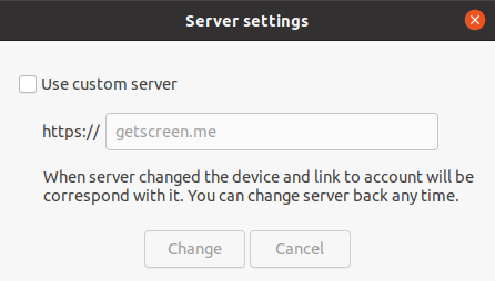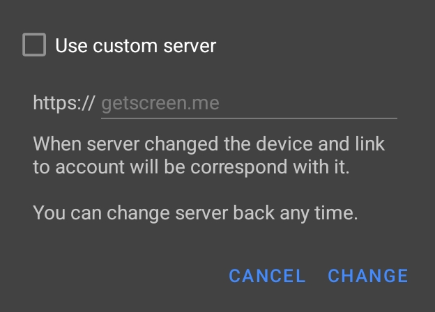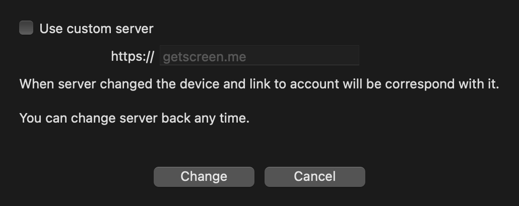 Used to override the default Getscreen.me server address. This option is intended for use with the Self-Hosted server version.