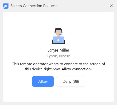 This option allows the remote operator to connect to the device without requiring confirmation.