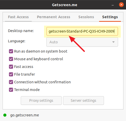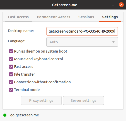 getscreen -config "name='My Computer' control=true fast_access=false file_transfer=true disable_confirmation=true proxy='socks5://username:[email protected]:8080'"