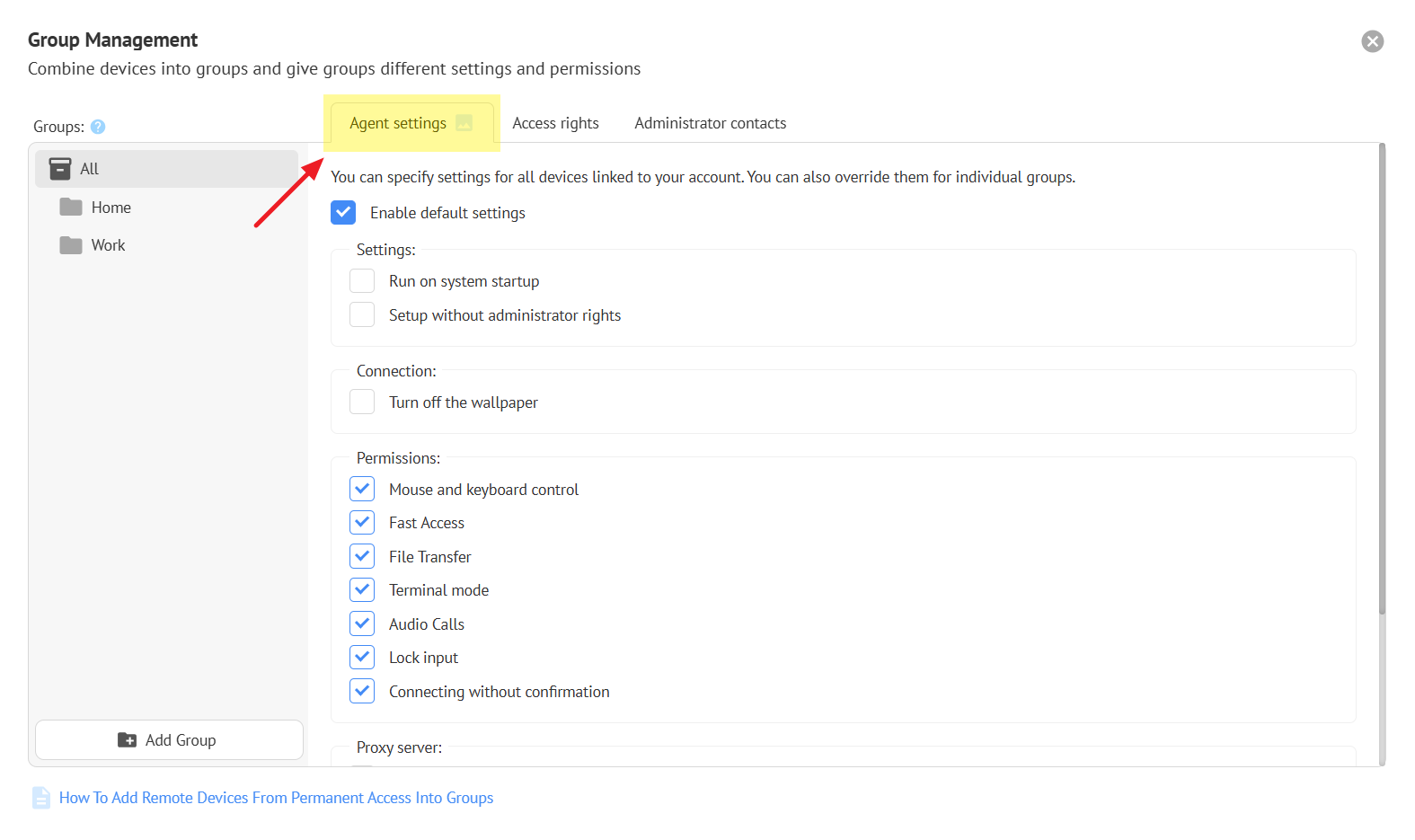 You can apply the above-mentioned settings not only to a single device but also to multiple devices at once, provided they have permanent access configured. These settings can be applied to all devices in your account or to specific device groups.
