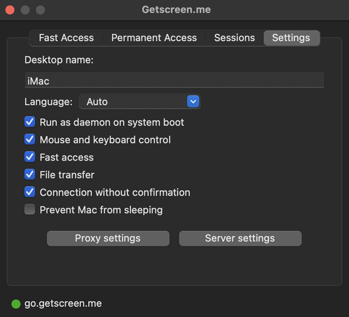 /Applications/Getscreen.me.app/Contents/MacOS/Getscreen.me -config "name='My Computer' control=true fast_access=false file_transfer=true disable_confirmation=true proxy='socks5://username:[email protected]:8080'"