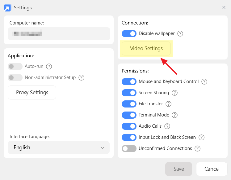 When connecting to a device in remote desktop control mode, the screen image from the remote device is transmitted as a video stream. To achieve high-quality video, stable network conditions are required — but these are not always available. For this reason, we provide several settings that allow you to adjust video transmission according to your current network conditions.