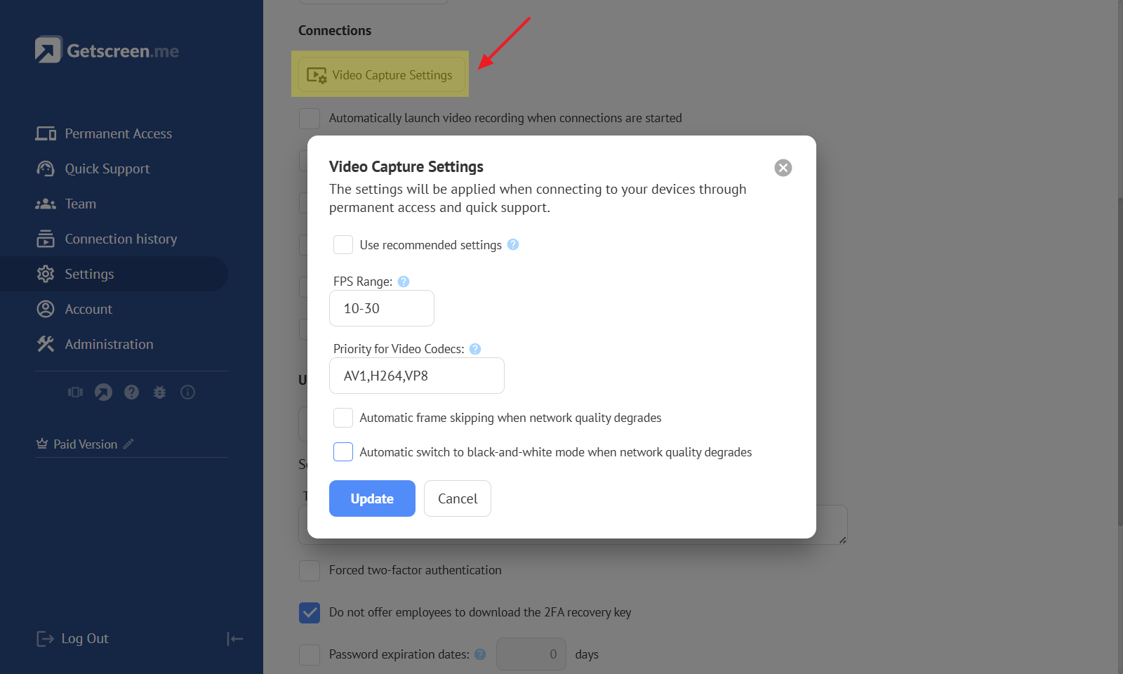 You can also set default encoding preferences for all devices linked to your account. To do this, go to the Video Capture Settings section and modify the recommended settings.
