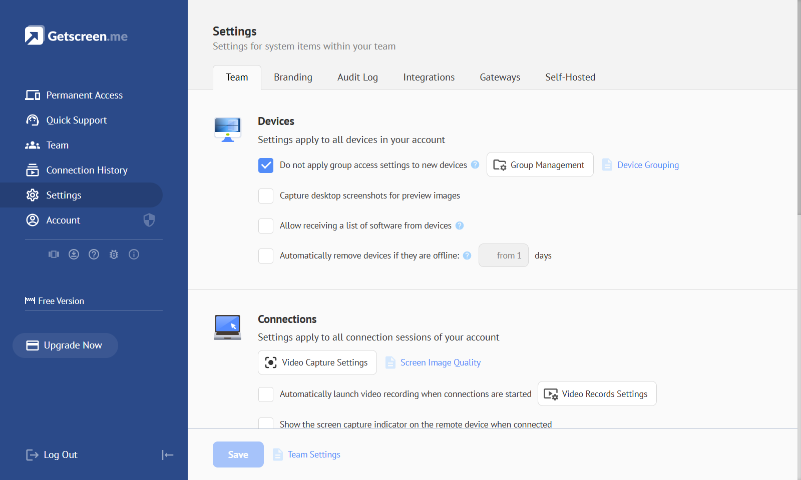 The following settings apply to all connections made under your account, including those initiated by your team’s technicians.