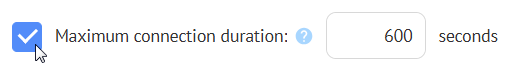 To set this limit, check Maximum connection duration and specify the maximum duration in seconds.