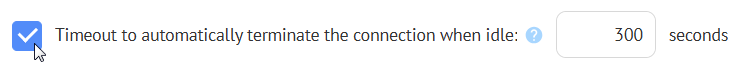 To enable this, check Timeout to automatically terminate the connection when idle and specify the idle time in seconds.