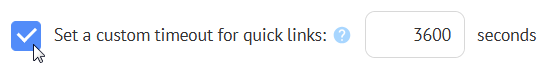 To use this option, check Set a custom timeout for quick links and specify the desired expiration time in seconds.