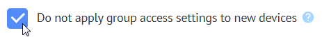 If you do not want new devices to automatically inherit group access settings, you can disable this behavior using the Do not apply group access settings to new devices option.