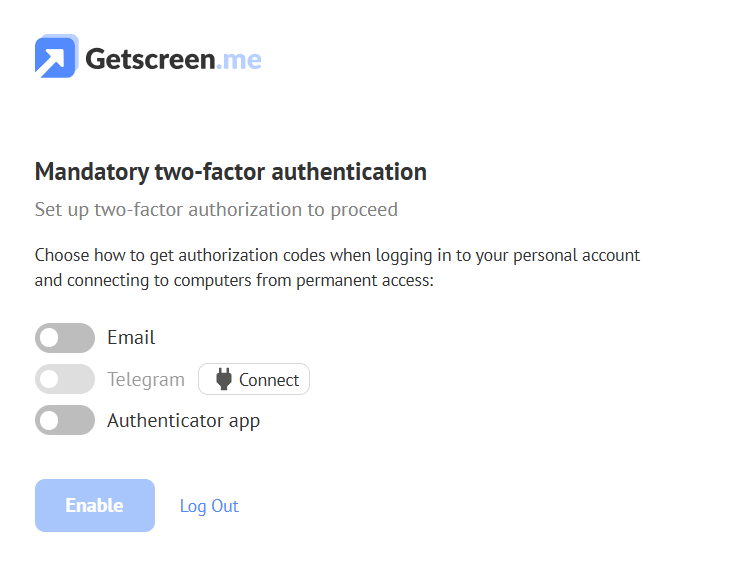 When this option is active, technicians who do not have two-factor authentication enabled will see a message during login and will not be allowed into their personal account until they set it up.