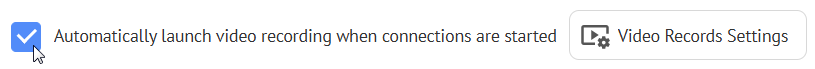 You can enable forced automatic video recording for all your connections, including those of your technicians. This recording cannot be disabled during an active session. To enable it, check Automatically launch video recording when connections are started.